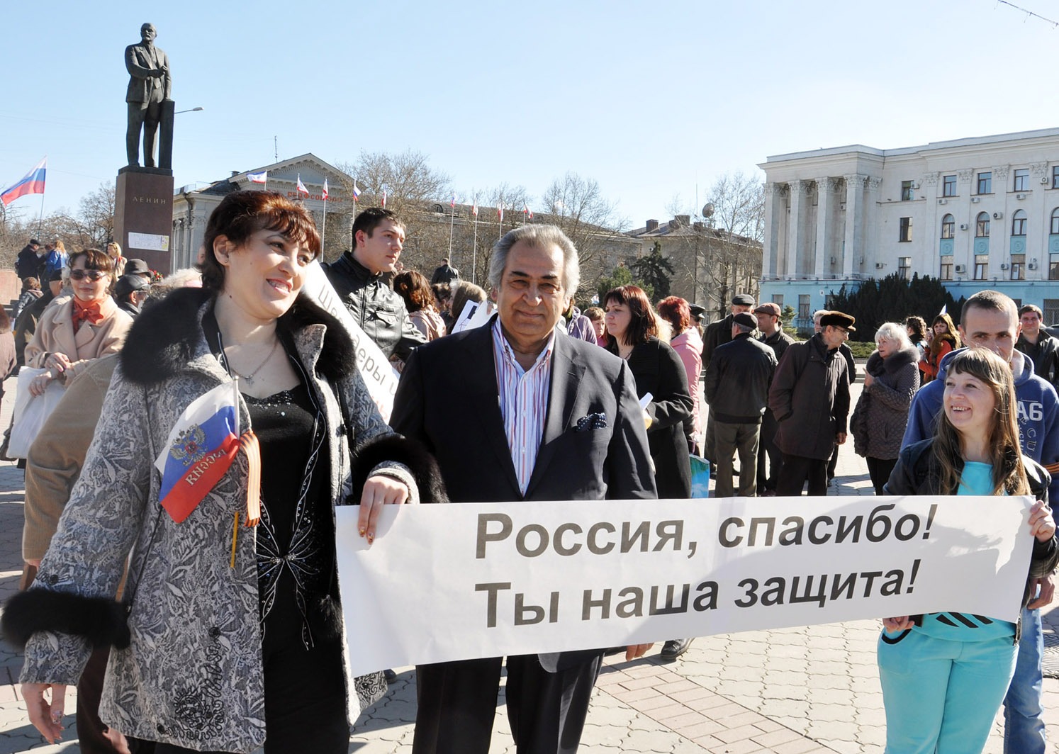 Rus askerlerinin kuşatması altındaki Kırım Özerk Cumhuriyeti Başbakanlık ve Parlamento binaları başta olmak üzere tüm resmi devlet kuruluşları ve kamuya ait kurumlarda Kırım bayrakları yanındaki Ukrayna bayrakları indirilerek yerine Rus bayrakları çekilmiş durumdaydı. Rusya Halka ‘kontrol artık bizde’ mesajı veriyor, Kırım’da Bütün bu binaların giriş ve çıkışları sivil Rus milislerce kontrol ediliyor, içeri girmek isteyen en üst düzey görevliler bile bu milislerin güvenlik ve kimlik kontrollerinden sonra içeri alınıyordu. Başbakanlık ve Parlamento binaları önünde Kırımlı Ruslar sivil koruma birimleri oluşturarak önlerinde kalkanlarla nöbet tutarken vatandaşlar tarafından sloganlarla desteklenip kırmızı karanfiller veriliyordu.
