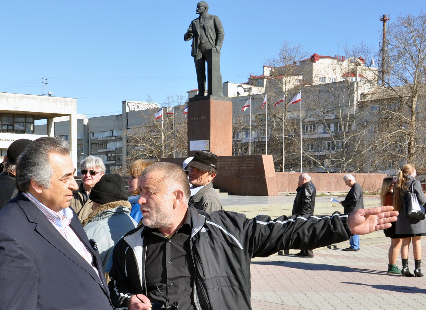 Akşam iş çıkışından sonra araçlarına Rus bayrakları takanlar bir maç kazanmış gibi sokaktaki insanların şaşkın bakışları arasında klakson çalıp hoparlörlerle Rusça slogan atıp marşlar çalarak cadde ve sokak aralarında dolaşıyor. Kırım Tatarları Milli Meclisinde Rus asıllıların bu oldu-bitti davranışları karşısında toplantı üstüne toplantı yaparak tutum belirlemeye çalışıyor, onları vatanlarından kopararak yıllarca sürgüne gönderen Rusların Kırım işgaline karşı çıkıyorlardı. İçeriden yardım eden ve nüfusun yüzde 58,5 ini oluşturan Rus asıllı Kırımlılar bu işgale destek veriyordu.